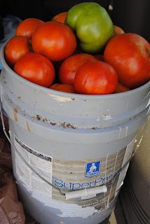 I couldn't believe it!!! I spent 20 minutes in a tomato field this morning. I never dreamed that I would be walking up and down tomato rows, picking beautiful tomatoes by the bucket fulls ever again. When I went to my friends house yesterday ,she had a huge bowl of pretty tomatoes on her kitchen counter. I asked her where she had gotten them and she told me about this little farm on the other side of Decatur, up a mountain where you could go pick tomatoes and green beans. After having lunch in town, Chuck and I set out to find the tomato field. We found it! It's owned by this nice little old man. He told us to go up the road, turn left and it took us right to the fields. It was a bit different than the Florida fields where we used to pick, but the tomatoes where just as pretty. Plus, get this....we can pick from June until the first frost which should be the end of October. It's going to be wonderful having pretty, wonderful tasting tomatoes all summer long. Who knew I would have my kitchen counters covered in tomatoes again...just like my kitchen in Florida, once a year. I certainly felt like Deja vu today.